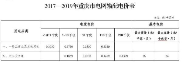 根據(jù)國(guó)家發(fā)展改革委輸配電價(jià)改革的統(tǒng)一部署,經(jīng)審核,現(xiàn)將重慶電網(wǎng)2017—2019年輸配電價(jià)有關(guān)事項(xiàng)通知如下: